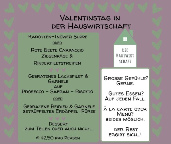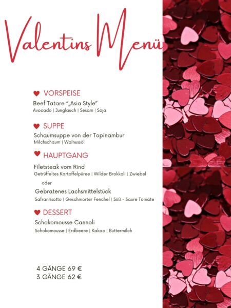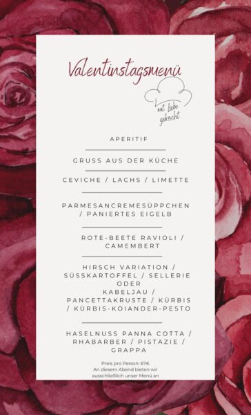 Das Küchenteam hat ein besonderes Valentinstags-Menü für Euch zusammengestellt.
