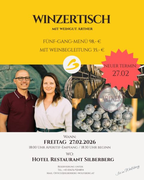 Ort: Hotel-Restaurant Silberberg in WolfsbergACHTUNG ! NEUER TERMIN WINZERTISCH: 27.02.2026