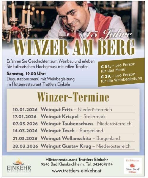 Ort: Trattler's Einkehr in Bad KleinkirchheimWinzer am Berg – Winter Edition