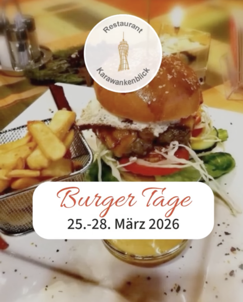 Ort: Restaurant Karawankenblick in KeutschachVom 25.03. – 28.03.2026 sind bei uns Burger Tage! 🍔🔥